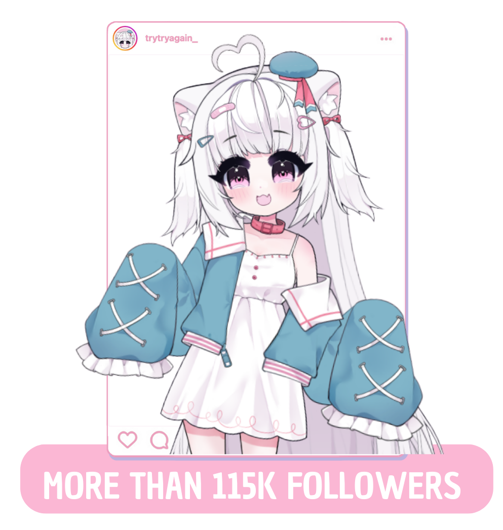 I’m a fulltime artist & Vtuber from the Midwest! (^▽^人) I went to art school and have a BFA in illustration–though I taught myself how to draw anime after I graduated! I worked on my portfolio on instagram and I entered drawing contests!